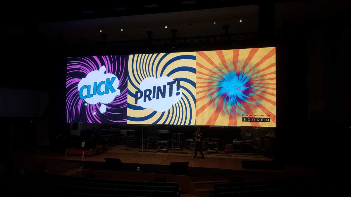 Irtopaloista rakennettavat LED-seinämme mahdollistavat jättinäyttöjen rakentamisen minne tahansa, tarkasti mittojen mukaan. Ratkaisuillamme voidaan toteuttaa niin pieniä visuaalisia yksityiskohtia yritystilaisuuksiin kuin elämyksellistä kuvatoistoa esimerkiksi festivaaleille. Myös monenlaiset erikoistoteutukset ovat mahdollisia.